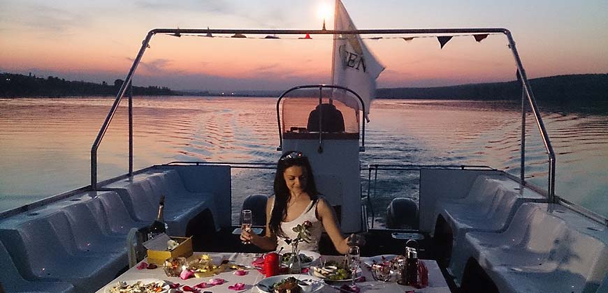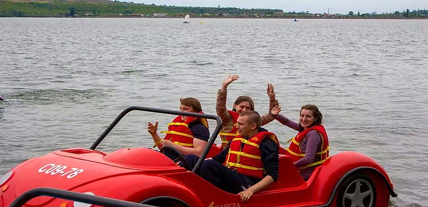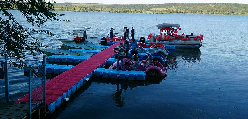 | Спорт и развлечения | Экскурсионные прогулки по озеру Гидигич на 25 местном (24 мест + водитель) пати-понтоне, два мощных двигателя YAMAHA 150. Комфортные мягкие сидения, тент от солнца, площадка для купания с лестницей выхода из воды, холодильник и столики для закусок. Возможность арендовать катер Quicksilver 540 с водителем. На нем вы можете совершить прогулки на высокой скорости, обучится навыкам управления с опытным инструктором. Так же мы предлагаем вам прокат весельных и гребных 4-х местных лодок Пела-Фиорд, водных катамаранов для 4-х людей с солнечным тентом. |