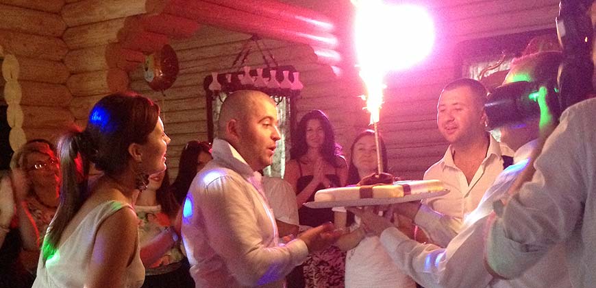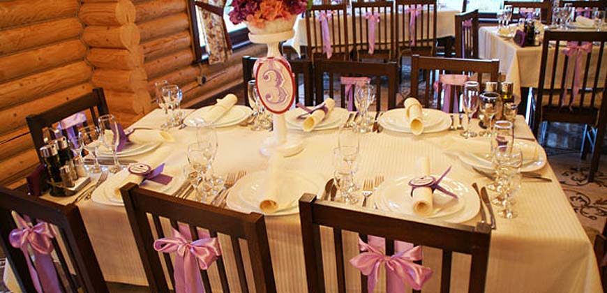 Банкетный зал на втором этаже и уютный каминный зал на первом, банкетное и фуршетное меню, высокий уровень обслуживания, при желании номер для новобрачных, размещение гостей в уютных коттеджах, выездная регистрация брака. К традиционному застолью, предлагаем развлекательную программу и тематическое оформление вашего праздника. В теплое время года к Вашим услугам: катамараны, гребные лодки и белоснежный корабль на 30 мест для водных путешествия по озеру Гидигич.